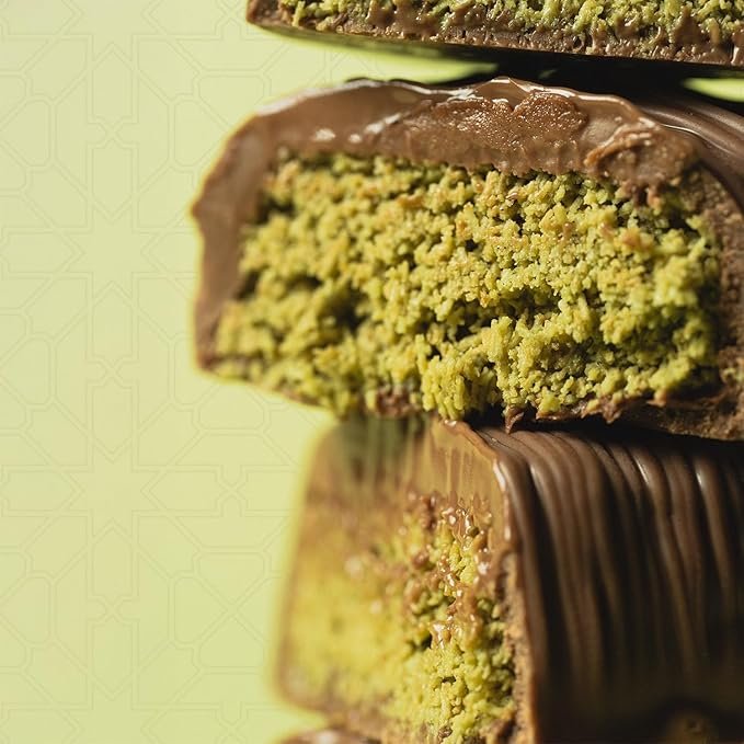 - Exquisite Taste Sensation: Delight in the luxurious blend of rich Belgian milk chocolate and a sumptuous filling of fresh pistachio paste cream, harmoniously combined with the traditional flavors of knafeh.